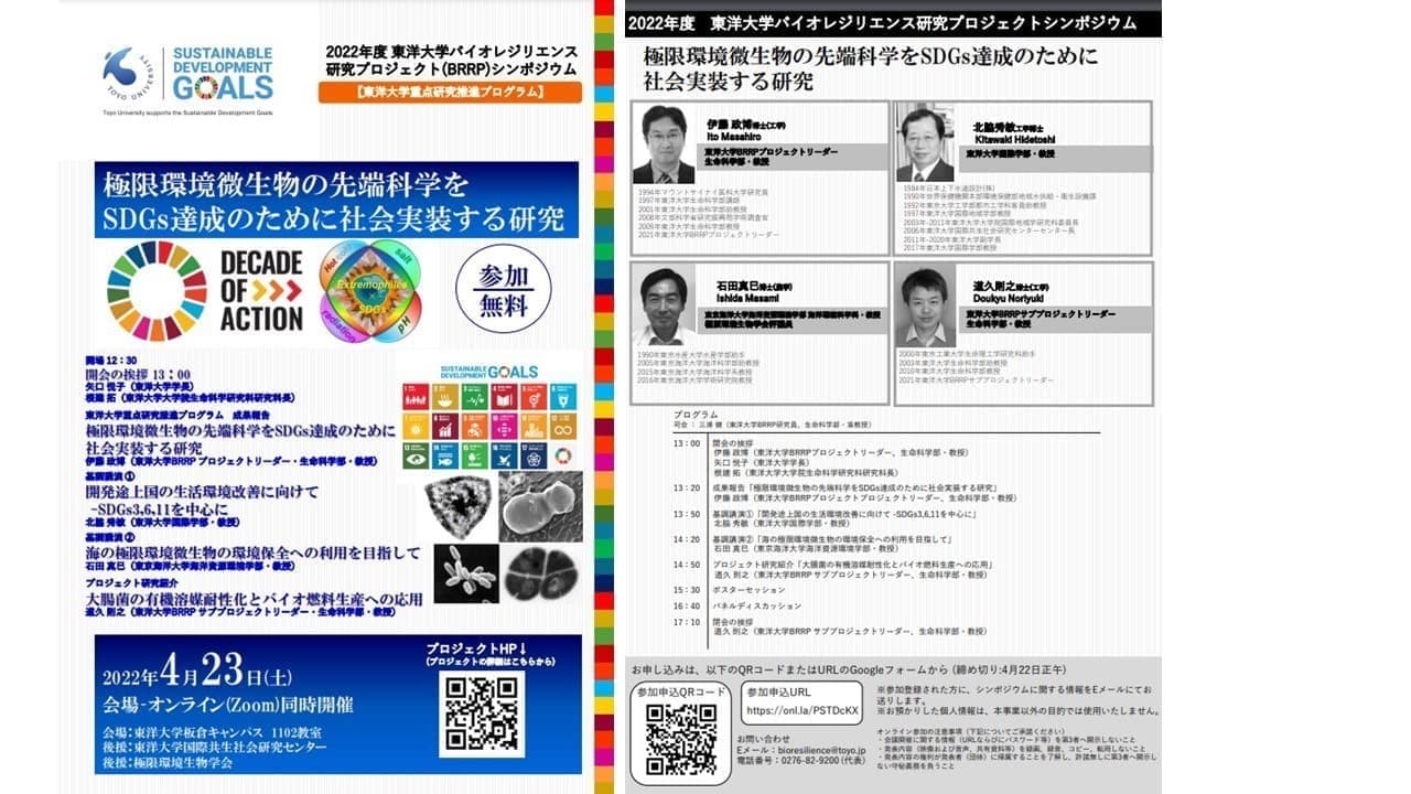A study to implement advanced science on extremophiles in society to achieve the SDGs-Extremophiles × SDGs × Toyo Grand Design 2020–2024-